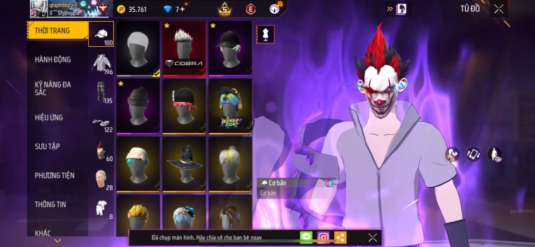 Acc chơi lâu, nhiều skin súng xịn, đầy đủ áo và phụ kiện nam. Đồ đủ dùng, đẹp mắt – vào chơi là chiến ngay!