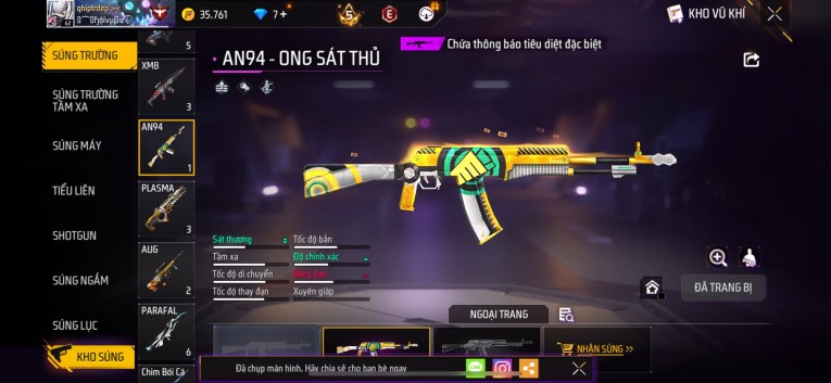 Phù hợp anh em thích skin đẹp, súng mạnh, acc ổn định.