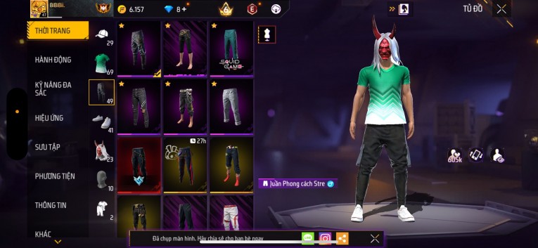 Acc chơi lâu, nhiều skin súng xịn, đầy đủ áo và phụ kiện nam. Đồ đủ dùng, đẹp mắt – vào chơi là chiến ngay!