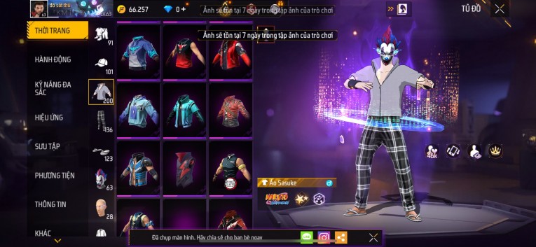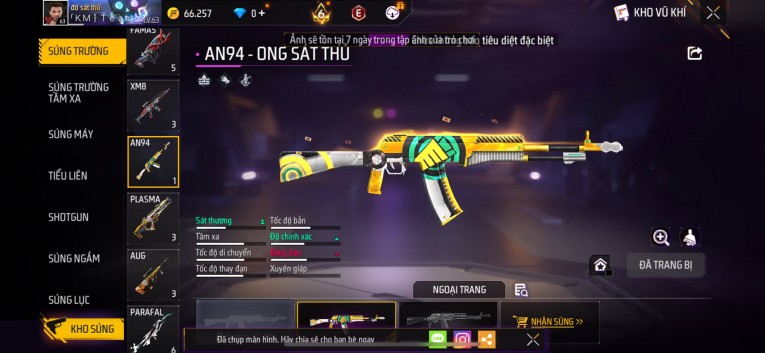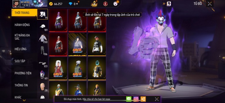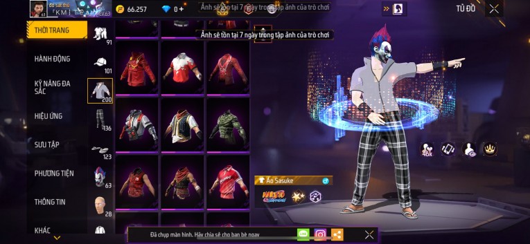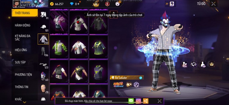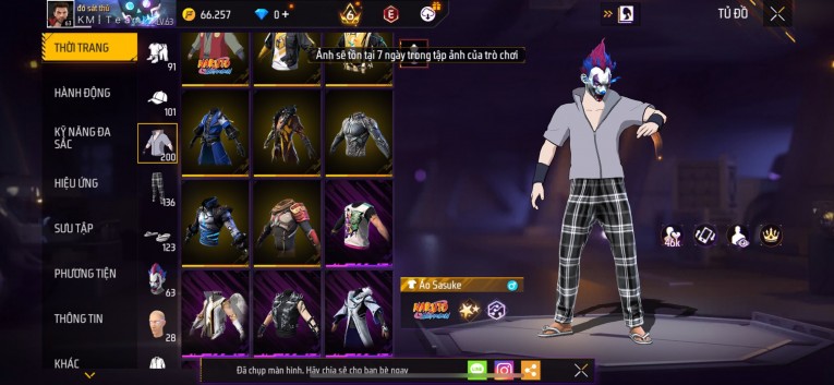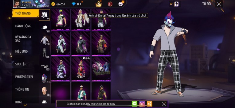Acc chơi lâu, nhiều skin súng xịn, đầy đủ áo và phụ kiện nam. Đồ đủ dùng, đẹp mắt – vào chơi là chiến ngay! Phù hợp anh em thích skin đẹp, súng mạnh, acc ổn định.