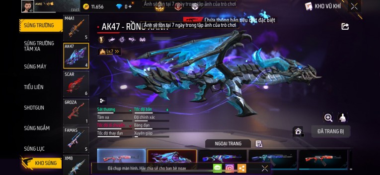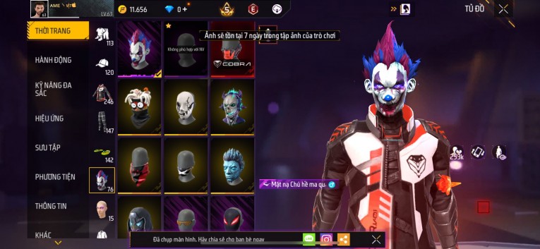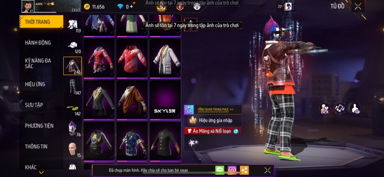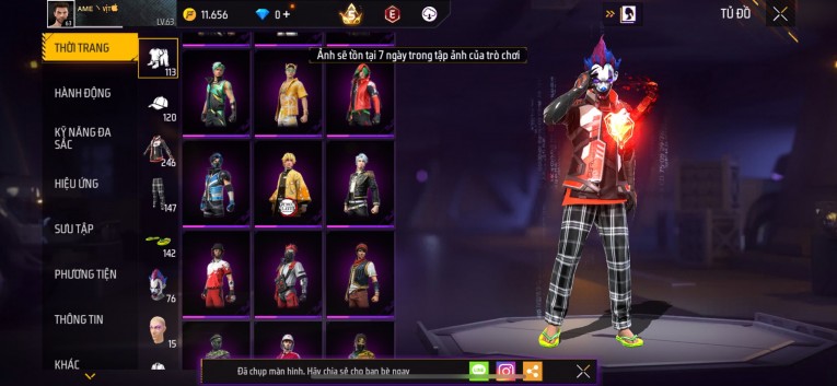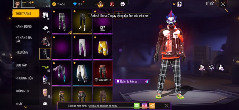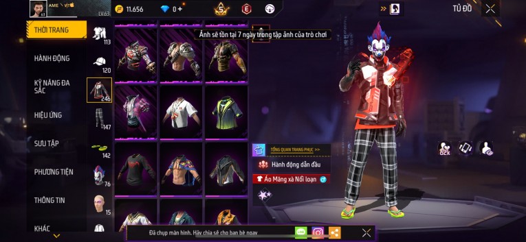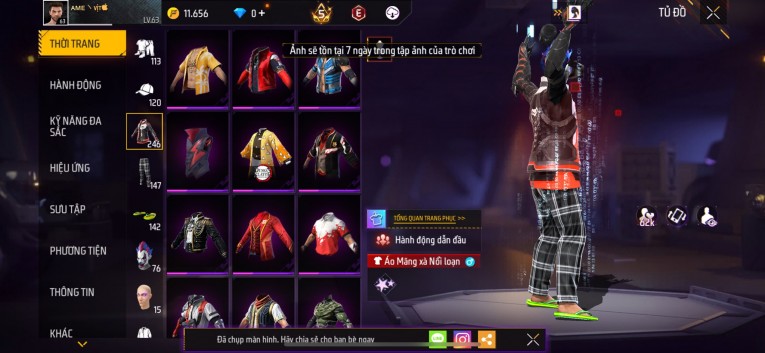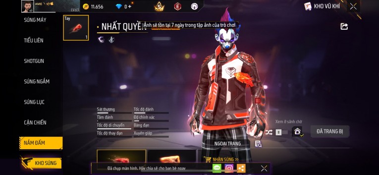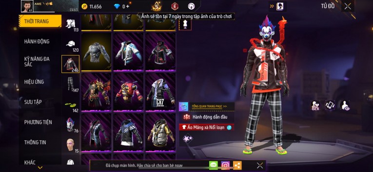 Acc chơi lâu, nhiều skin súng xịn, đầy đủ áo và phụ kiện nam. Đồ đủ dùng, đẹp mắt – vào chơi là chiến ngay! Phù hợp anh em thích skin đẹp, súng mạnh, acc ổn định.