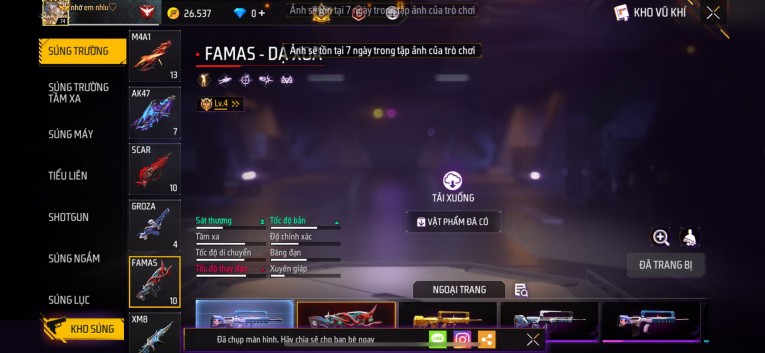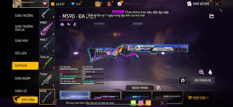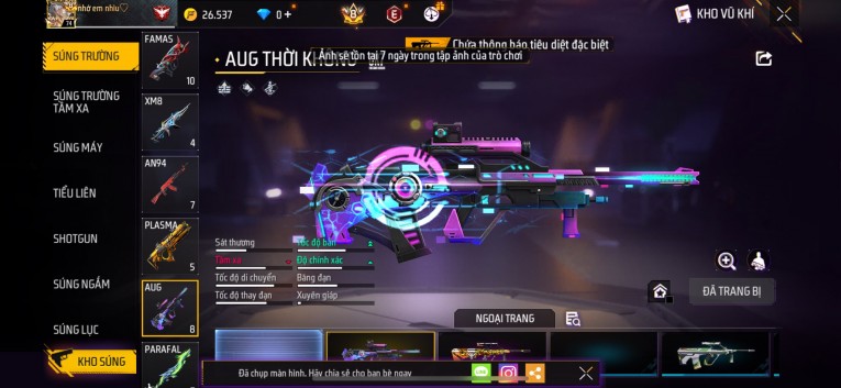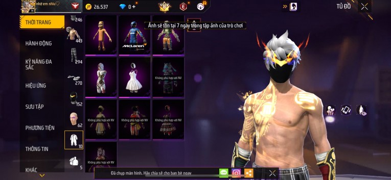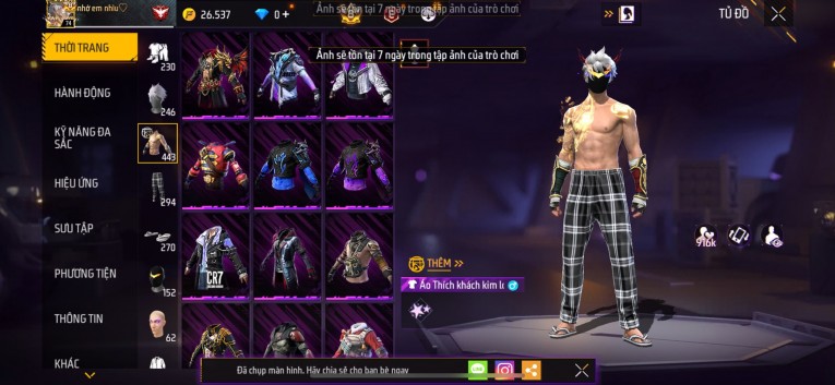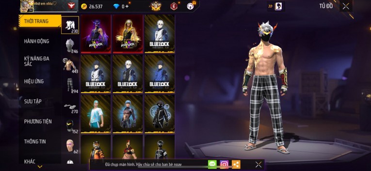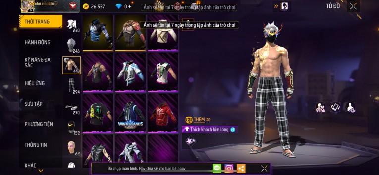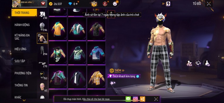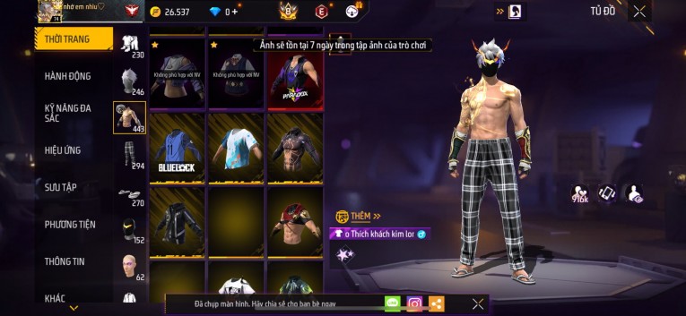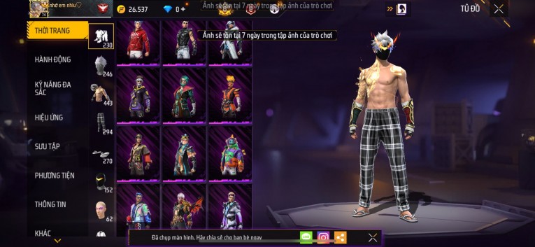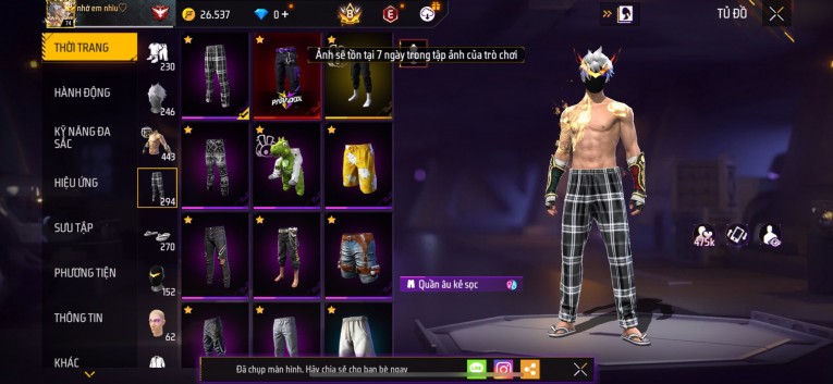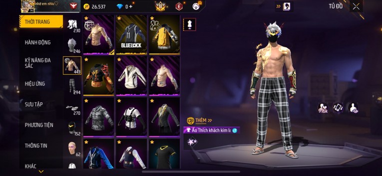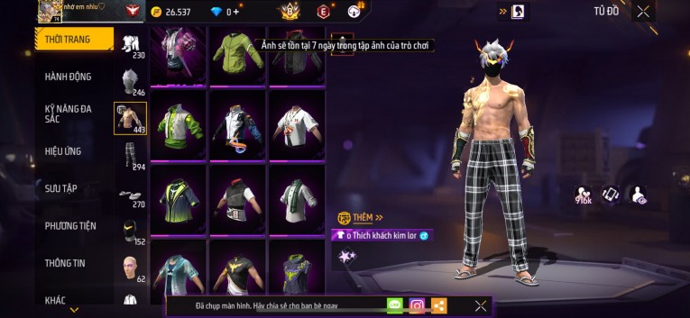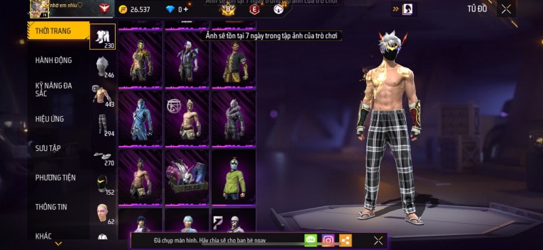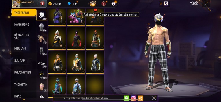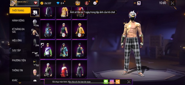 Acc chơi lâu, nhiều skin súng xịn, đầy đủ áo và phụ kiện nam. Đồ đủ dùng, đẹp mắt – vào chơi là chiến ngay! Phù hợp anh em thích skin đẹp, súng mạnh, acc ổn định.