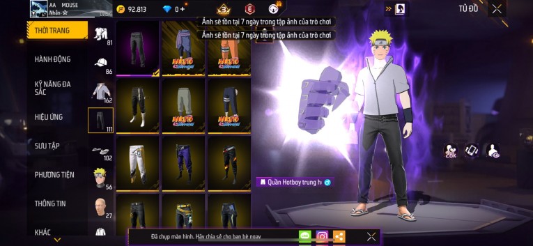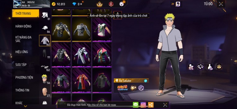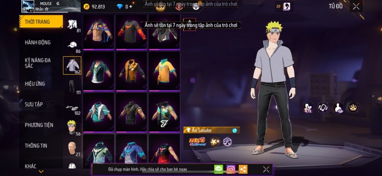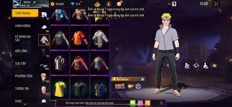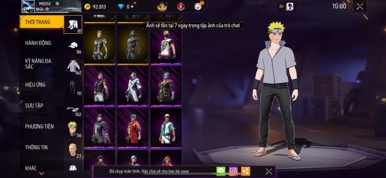 Acc chơi lâu, nhiều skin súng xịn, đầy đủ áo và phụ kiện nam. Đồ đủ dùng, đẹp mắt – vào chơi là chiến ngay! Phù hợp anh em thích skin đẹp, súng mạnh, acc ổn định.