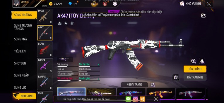 Acc chơi lâu, nhiều skin súng xịn, đầy đủ áo và phụ kiện nam. Đồ đủ dùng, đẹp mắt – vào chơi là chiến ngay! Phù hợp anh em thích skin đẹp, súng mạnh, acc ổn định.
