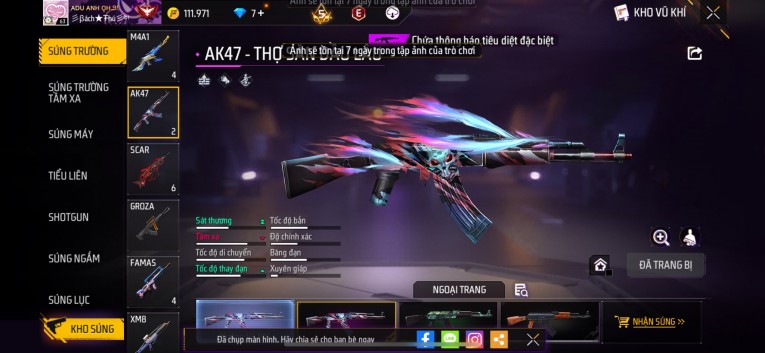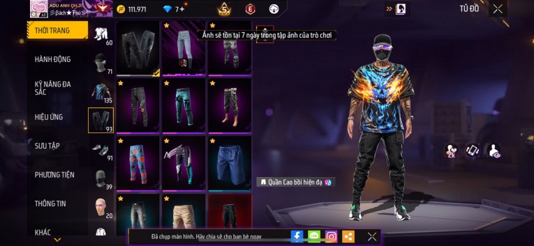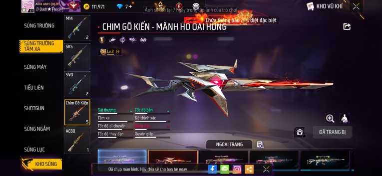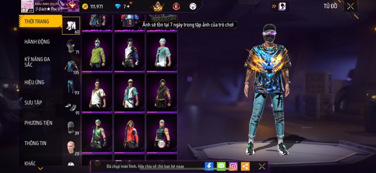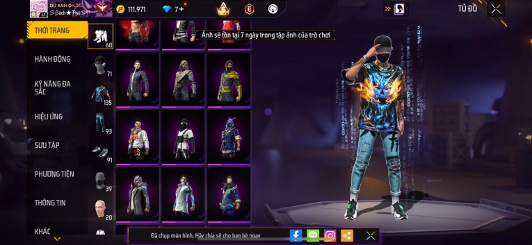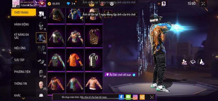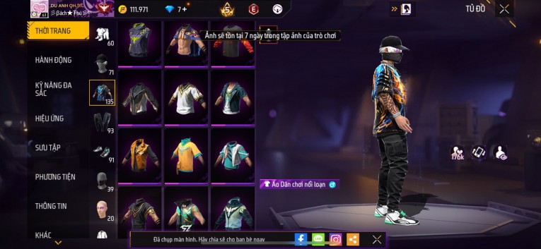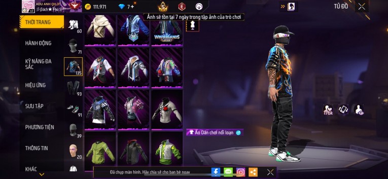 Acc chơi lâu, nhiều skin súng xịn, đầy đủ áo và phụ kiện nam. Đồ đủ dùng, đẹp mắt – vào chơi là chiến ngay! Phù hợp anh em thích skin đẹp, súng mạnh, acc ổn định.
