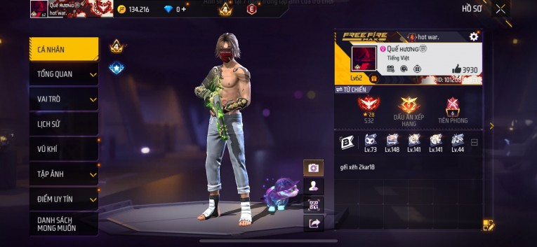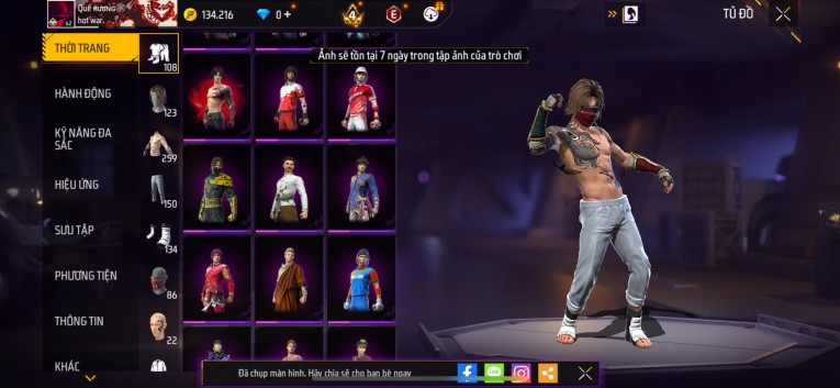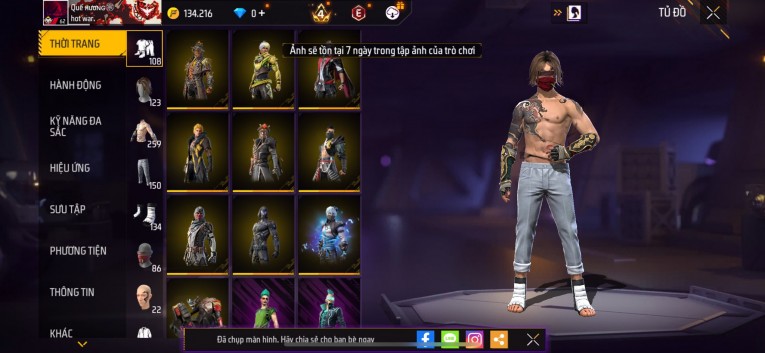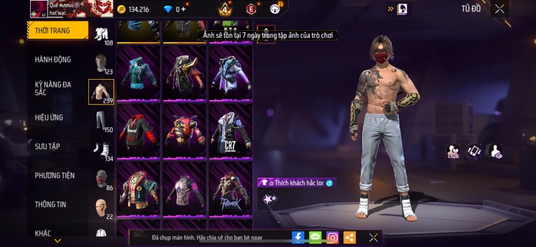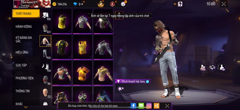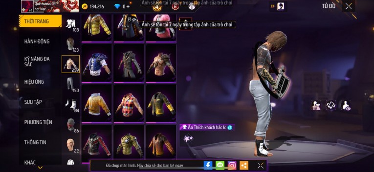 Acc chơi lâu, nhiều skin súng xịn, đầy đủ áo và phụ kiện nam. Đồ đủ dùng, đẹp mắt – vào chơi là chiến ngay! Phù hợp anh em thích skin đẹp, súng mạnh, acc ổn định.