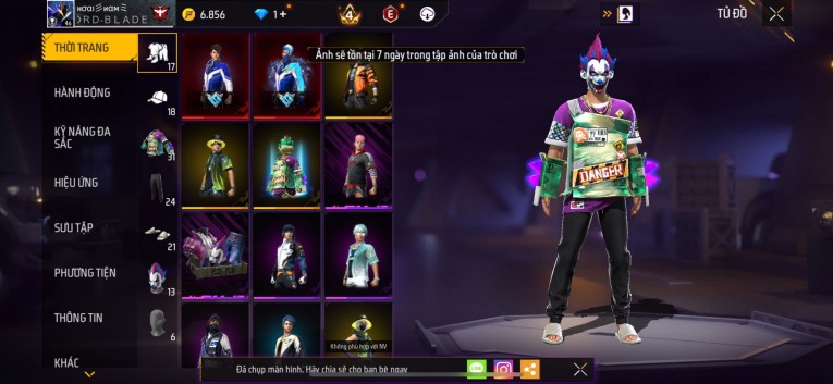 Acc chơi lâu, nhiều skin súng xịn, đầy đủ áo và phụ kiện nam. Đồ đủ dùng, đẹp mắt – vào chơi là chiến ngay! Phù hợp anh em thích skin đẹp, súng mạnh, acc ổn định.