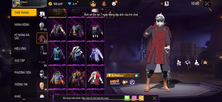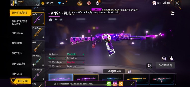 Acc chơi lâu, nhiều skin súng xịn, đầy đủ áo và phụ kiện nam. Đồ đủ dùng, đẹp mắt – vào chơi là chiến ngay! Phù hợp anh em thích skin đẹp, súng mạnh, acc ổn định.