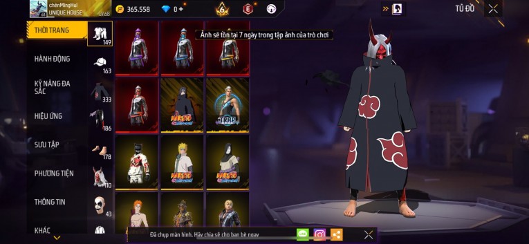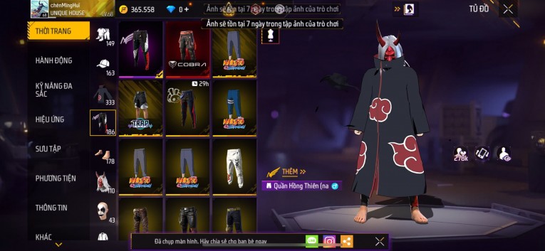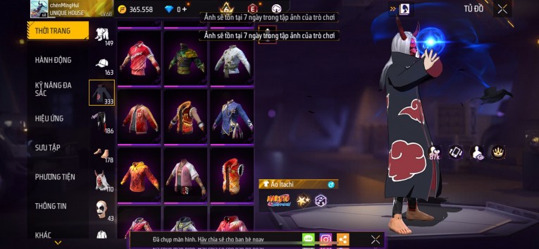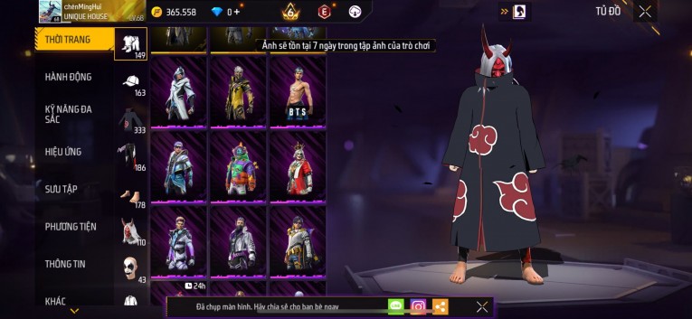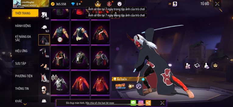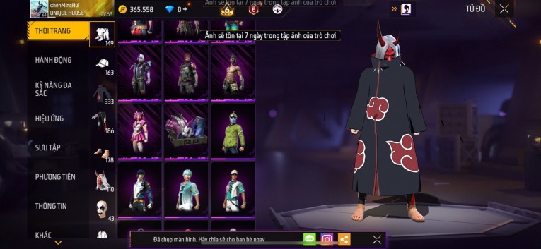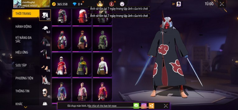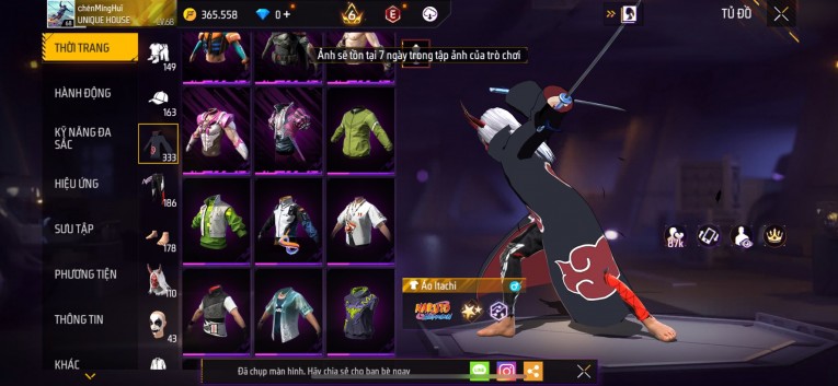Acc chơi lâu, nhiều skin súng xịn, đầy đủ áo và phụ kiện nam. Đồ đủ dùng, đẹp mắt – vào chơi là chiến ngay! Phù hợp anh em thích skin đẹp, súng mạnh, acc ổn định.