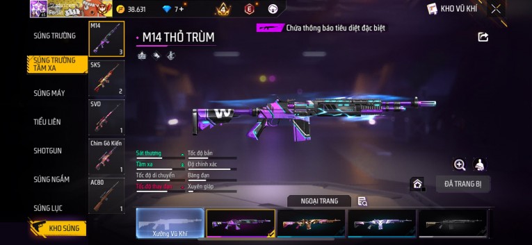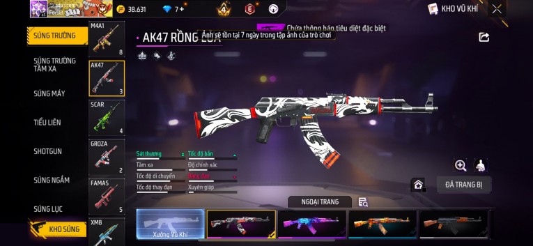 Acc chơi lâu, nhiều skin súng xịn, đầy đủ áo và phụ kiện nam. Đồ đủ dùng, đẹp mắt – vào chơi là chiến ngay! Phù hợp anh em thích skin đẹp, súng mạnh, acc ổn định.