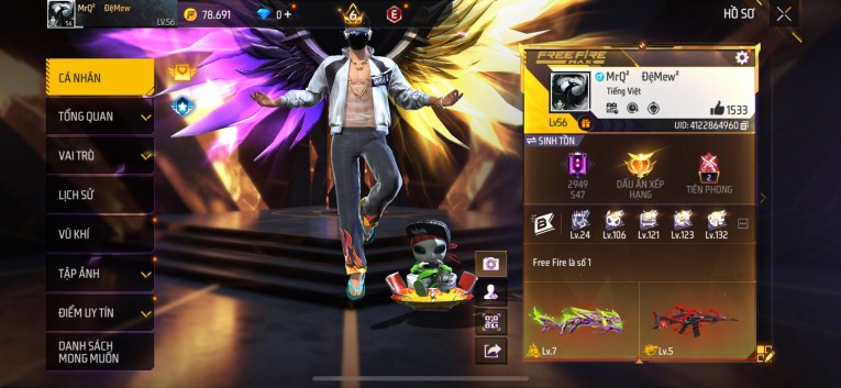 Acc chơi lâu, nhiều skin súng xịn, đầy đủ áo và phụ kiện nam. Đồ đủ dùng, đẹp mắt – vào chơi là chiến ngay! Phù hợp anh em thích skin đẹp, súng mạnh, acc ổn định.