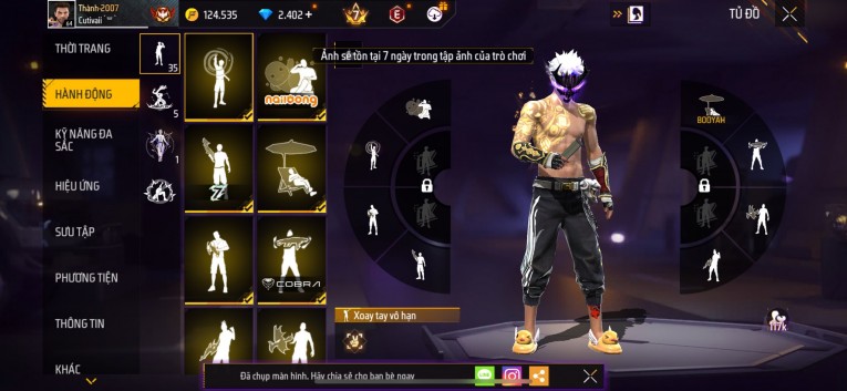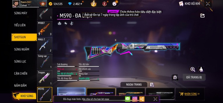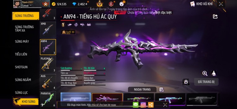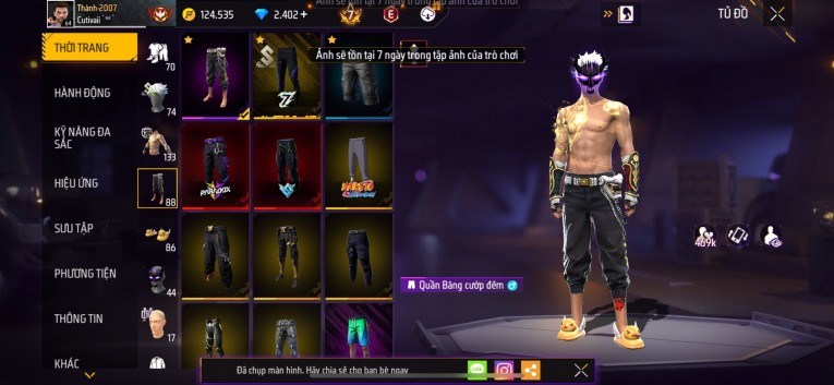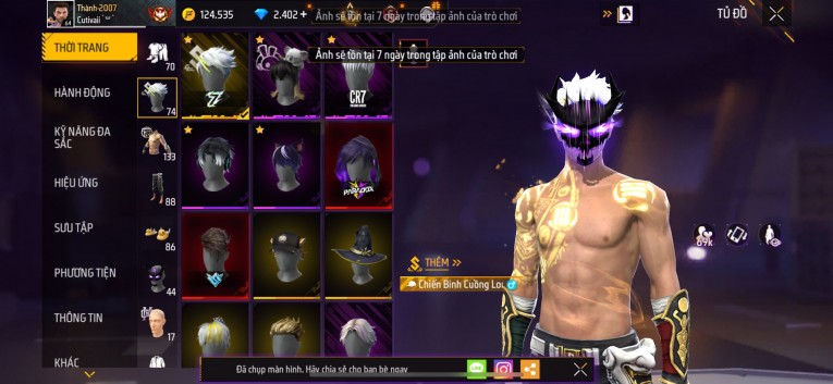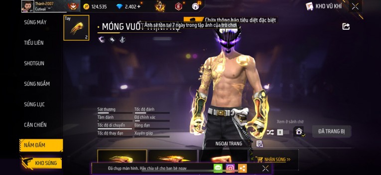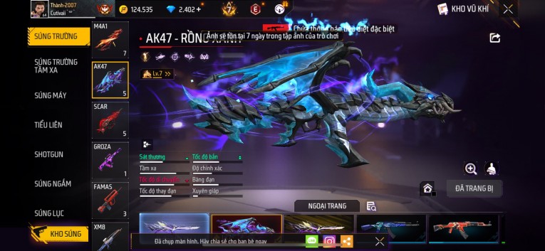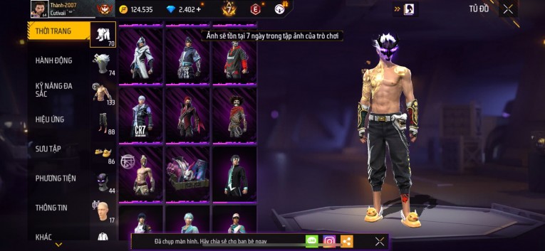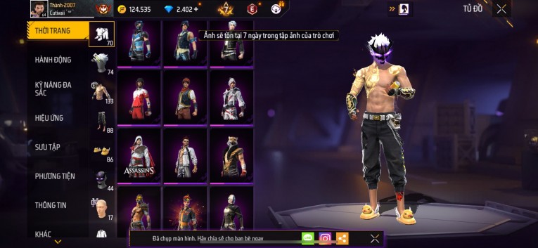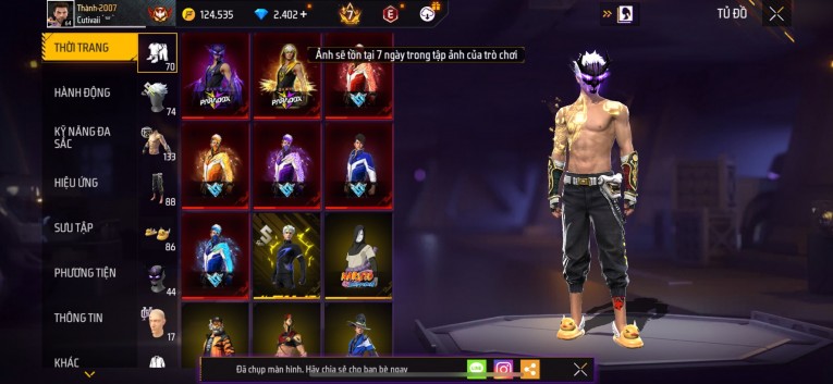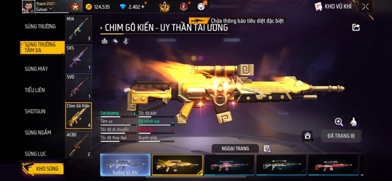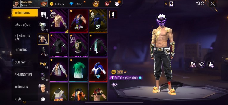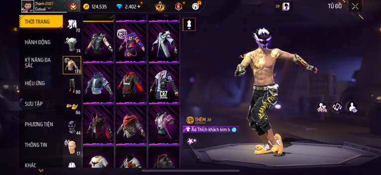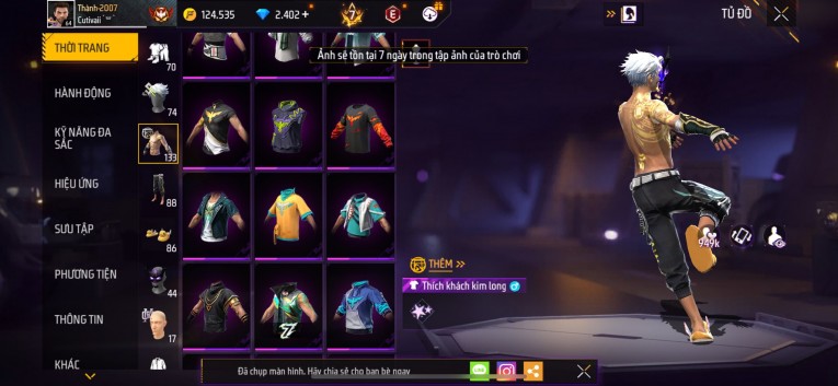 Acc chơi lâu, nhiều skin súng xịn, đầy đủ áo và phụ kiện nam. Đồ đủ dùng, đẹp mắt – vào chơi là chiến ngay! Phù hợp anh em thích skin đẹp, súng mạnh, acc ổn định.