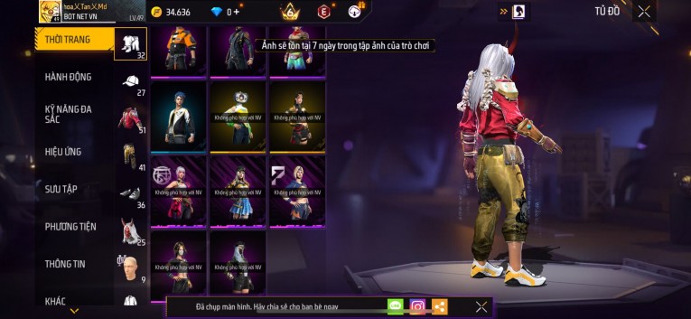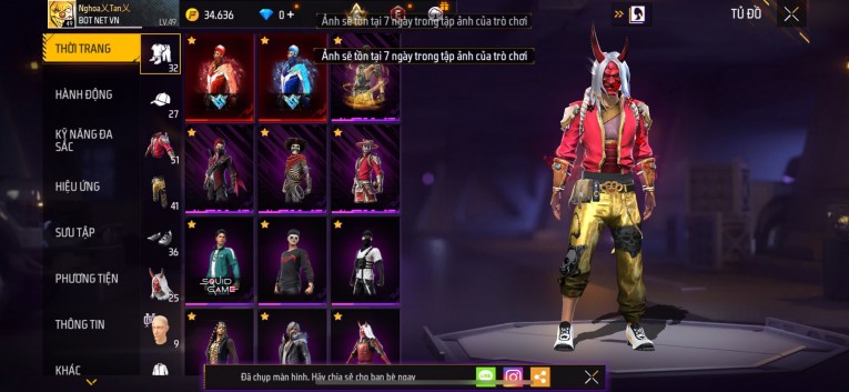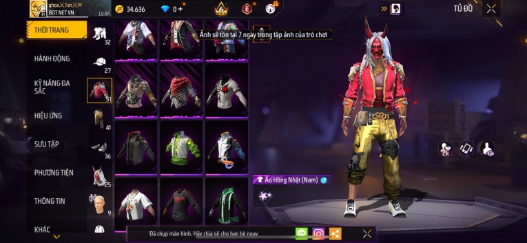 Acc chơi lâu, nhiều skin súng xịn, đầy đủ áo và phụ kiện nam. Đồ đủ dùng, đẹp mắt – vào chơi là chiến ngay! Phù hợp anh em thích skin đẹp, súng mạnh, acc ổn định.