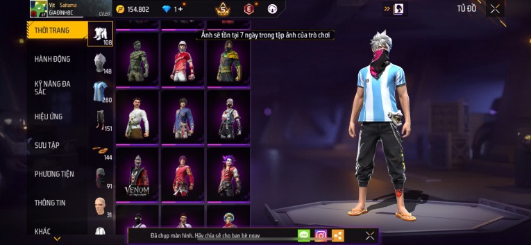 Acc chơi lâu, nhiều skin súng xịn, đầy đủ áo và phụ kiện nam. Đồ đủ dùng, đẹp mắt – vào chơi là chiến ngay! Phù hợp anh em thích skin đẹp, súng mạnh, acc ổn định.