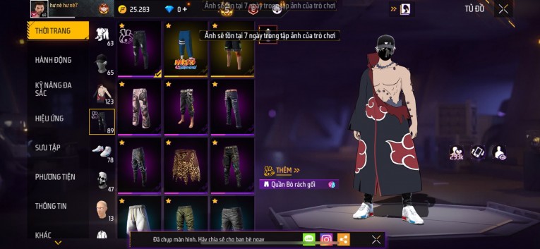 Acc chơi lâu, nhiều skin súng xịn, đầy đủ áo và phụ kiện nam. Đồ đủ dùng, đẹp mắt – vào chơi là chiến ngay! Phù hợp anh em thích skin đẹp, súng mạnh, acc ổn định.