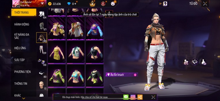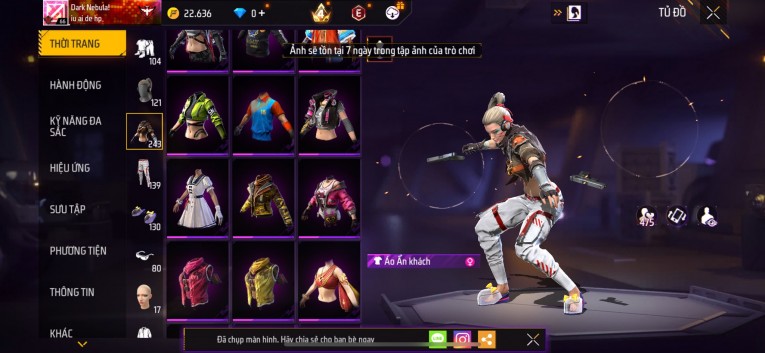 Acc chơi lâu, nhiều skin súng xịn, đầy đủ áo và phụ kiện nam. Đồ đủ dùng, đẹp mắt – vào chơi là chiến ngay! Phù hợp anh em thích skin đẹp, súng mạnh, acc ổn định.