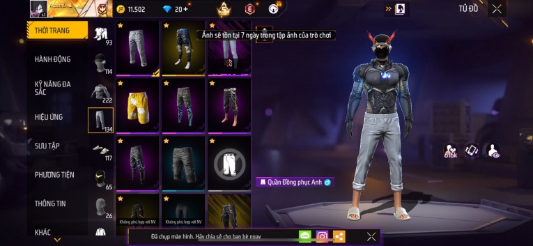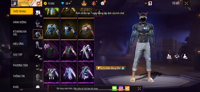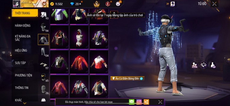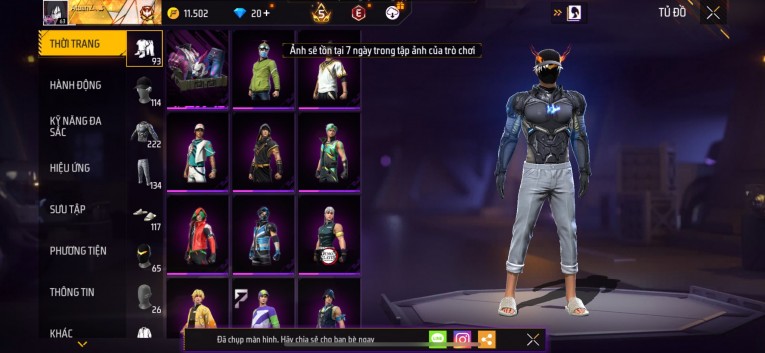 Acc chơi lâu, nhiều skin súng xịn, đầy đủ áo và phụ kiện nam. Đồ đủ dùng, đẹp mắt – vào chơi là chiến ngay! Phù hợp anh em thích skin đẹp, súng mạnh, acc ổn định.
