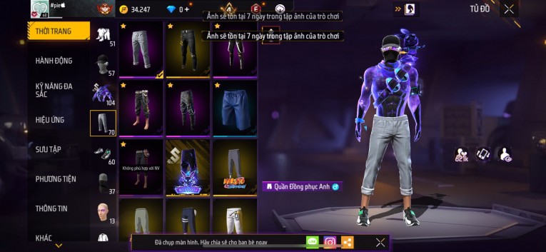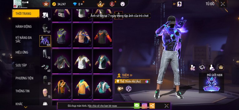Acc chơi lâu, nhiều skin súng xịn, đầy đủ áo và phụ kiện nam. Đồ đủ dùng, đẹp mắt – vào chơi là chiến ngay! Phù hợp anh em thích skin đẹp, súng mạnh, acc ổn định.