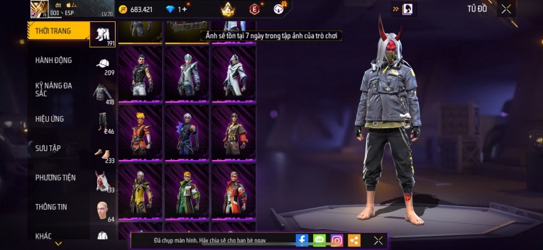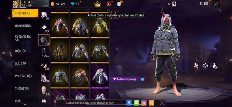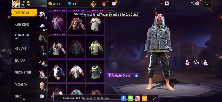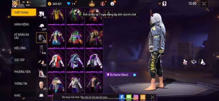 Acc chơi lâu, nhiều skin súng xịn, đầy đủ áo và phụ kiện nam. Đồ đủ dùng, đẹp mắt – vào chơi là chiến ngay! Phù hợp anh em thích skin đẹp, súng mạnh, acc ổn định.