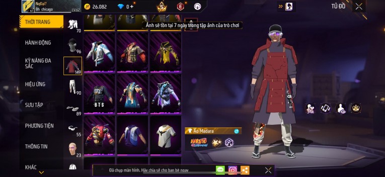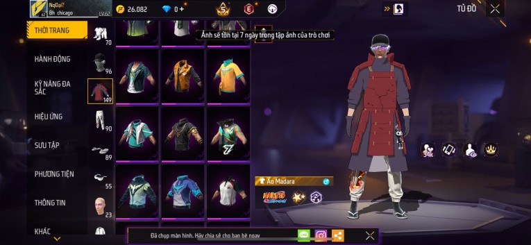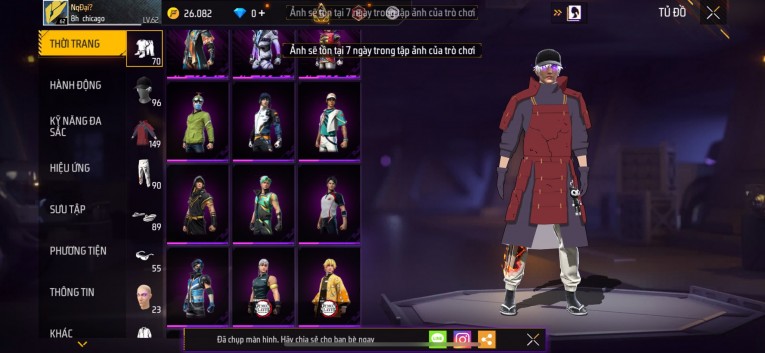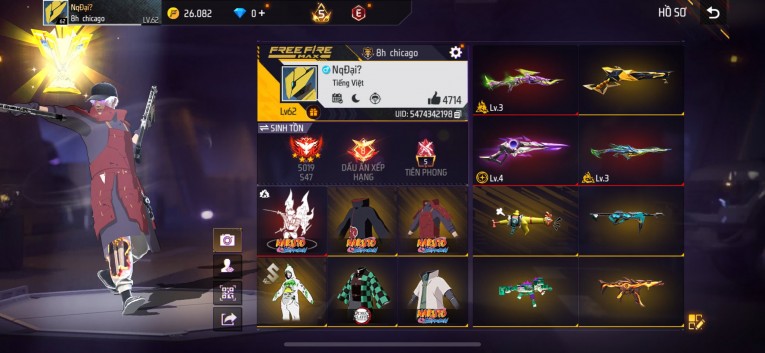 Acc chơi lâu, nhiều skin súng xịn, đầy đủ áo và phụ kiện nam. Đồ đủ dùng, đẹp mắt – vào chơi là chiến ngay! Phù hợp anh em thích skin đẹp, súng mạnh, acc ổn định.