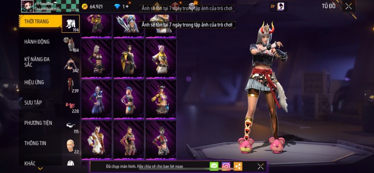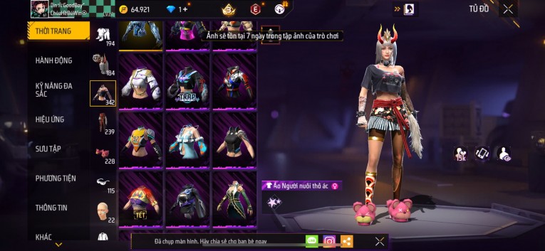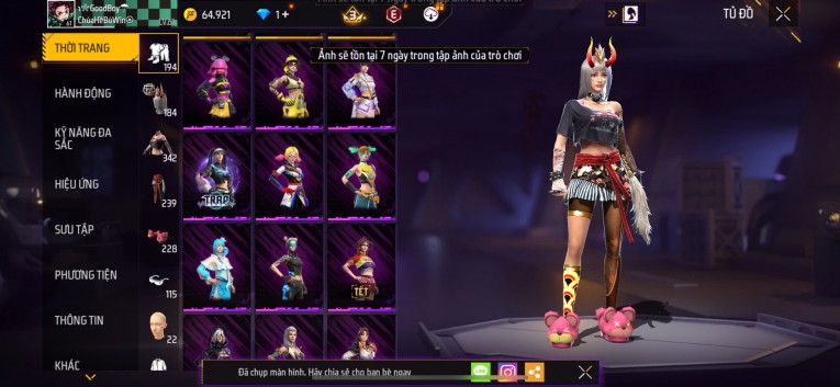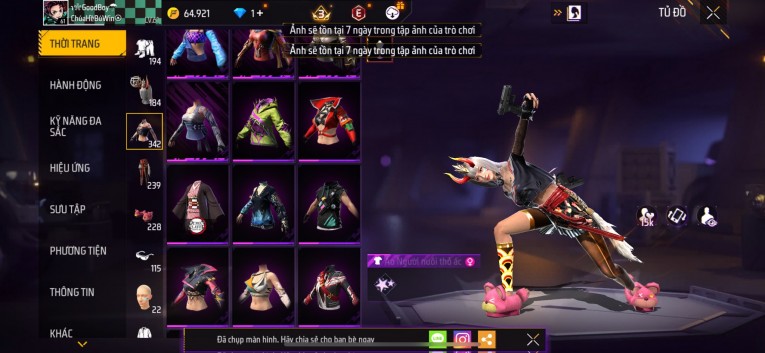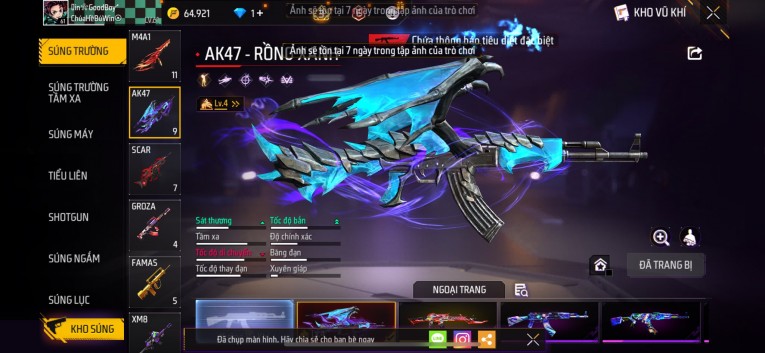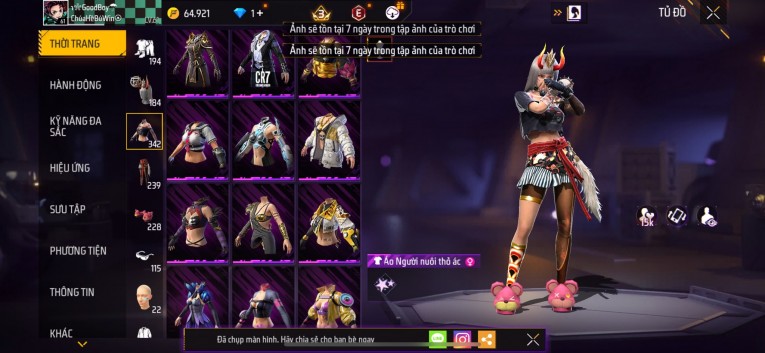 Acc chơi lâu, nhiều skin súng xịn, đầy đủ áo và phụ kiện nam. Đồ đủ dùng, đẹp mắt – vào chơi là chiến ngay! Phù hợp anh em thích skin đẹp, súng mạnh, acc ổn định.