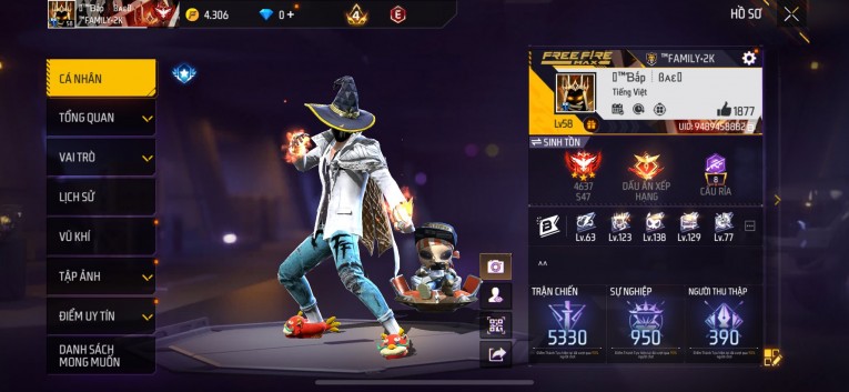 Acc chơi lâu, nhiều skin súng xịn, đầy đủ áo và phụ kiện nam. Đồ đủ dùng, đẹp mắt – vào chơi là chiến ngay! Phù hợp anh em thích skin đẹp, súng mạnh, acc ổn định.