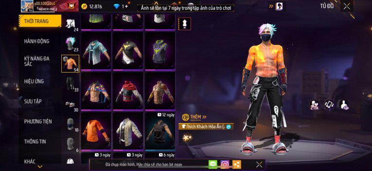 Acc chơi lâu, nhiều skin súng xịn, đầy đủ áo và phụ kiện nam. Đồ đủ dùng, đẹp mắt – vào chơi là chiến ngay!