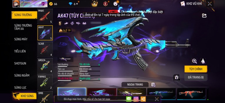 Acc chơi lâu, nhiều skin súng xịn, đầy đủ áo và phụ kiện nam. Đồ đủ dùng, đẹp mắt – vào chơi là chiến ngay! Phù hợp anh em thích skin đẹp, súng mạnh, acc ổn định.