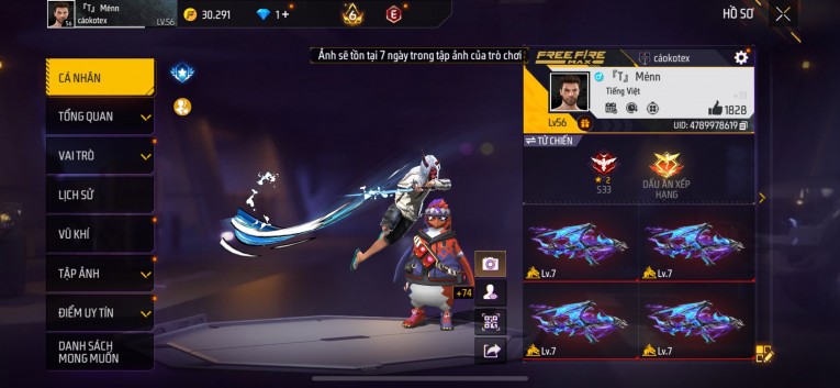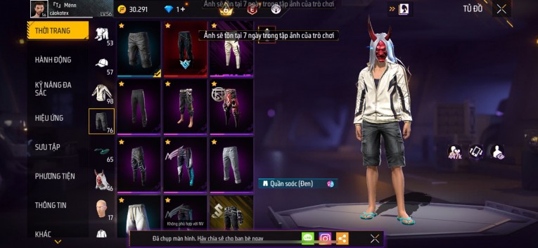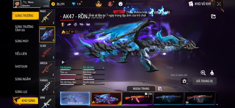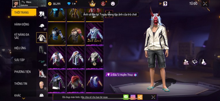 Acc chơi lâu, nhiều skin súng xịn, đầy đủ áo và phụ kiện nam. Đồ đủ dùng, đẹp mắt – vào chơi là chiến ngay! Phù hợp anh em thích skin đẹp, súng mạnh, acc ổn định.
