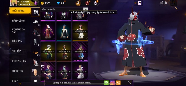 Acc chơi lâu, nhiều skin súng xịn, đầy đủ áo và phụ kiện nam. Đồ đủ dùng, đẹp mắt – vào chơi là chiến ngay! Phù hợp anh em thích skin đẹp, súng mạnh, acc ổn định.
