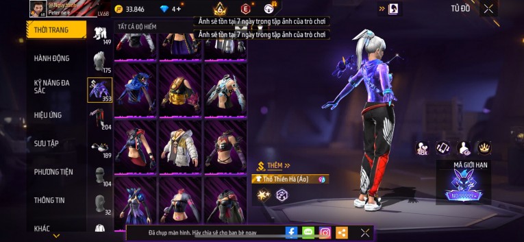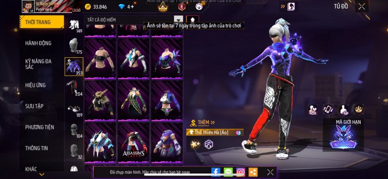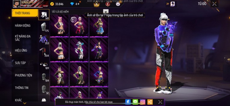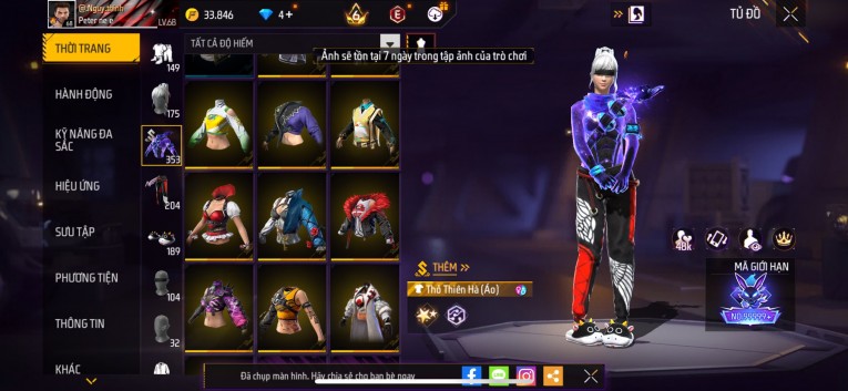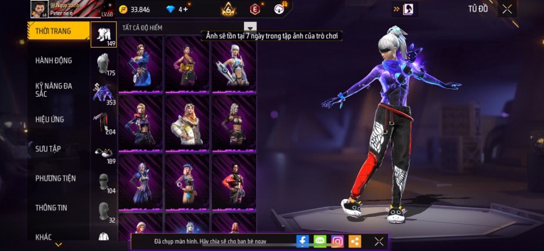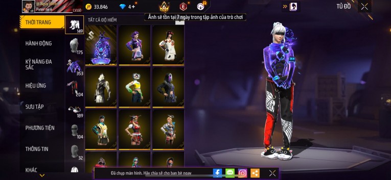 Acc chơi lâu, nhiều skin súng xịn, đầy đủ áo và phụ kiện nam. Đồ đủ dùng, đẹp mắt – vào chơi là chiến ngay!