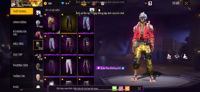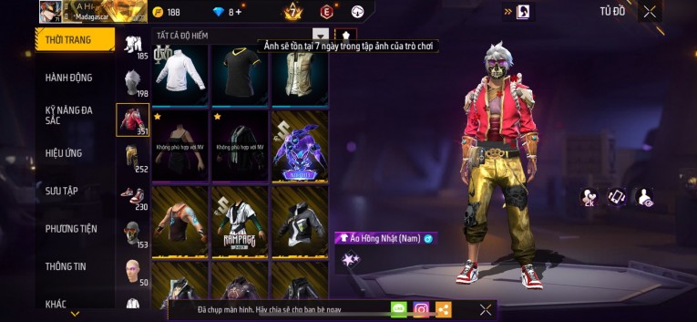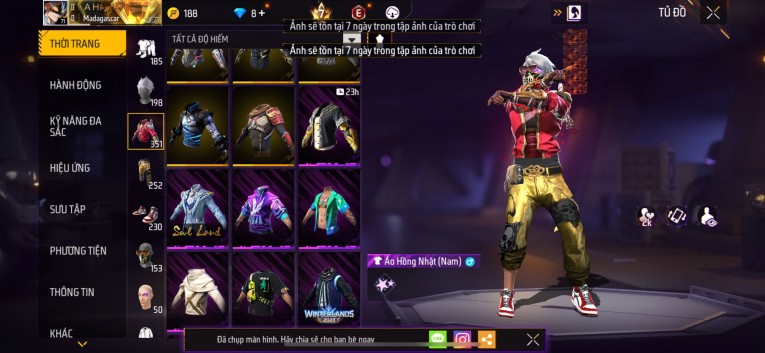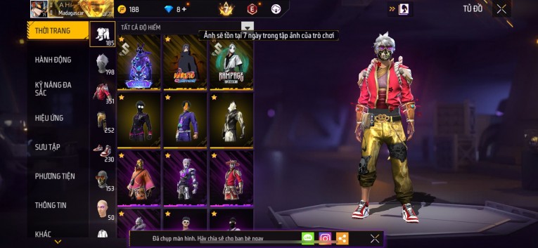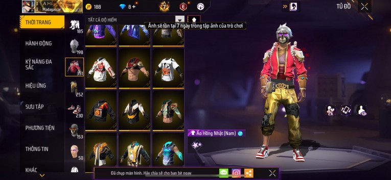 Acc chơi lâu, nhiều skin súng xịn, đầy đủ áo và phụ kiện nam. Đồ đủ dùng, đẹp mắt – vào chơi là chiến ngay!