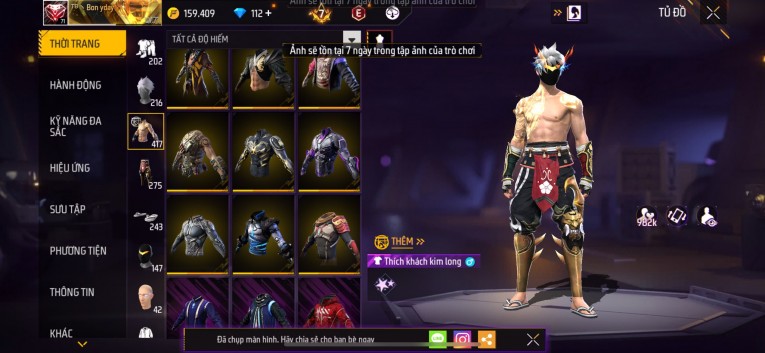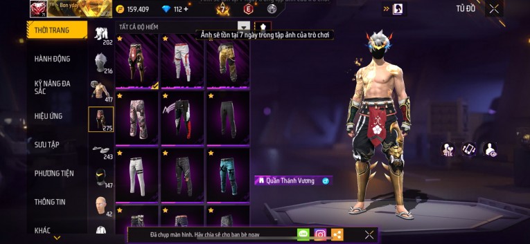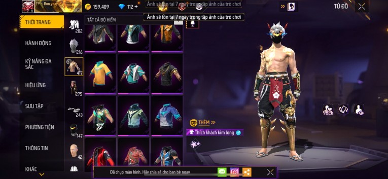 Acc chơi lâu, nhiều skin súng xịn, đầy đủ áo và phụ kiện nam. Đồ đủ dùng, đẹp mắt – vào chơi là chiến ngay!