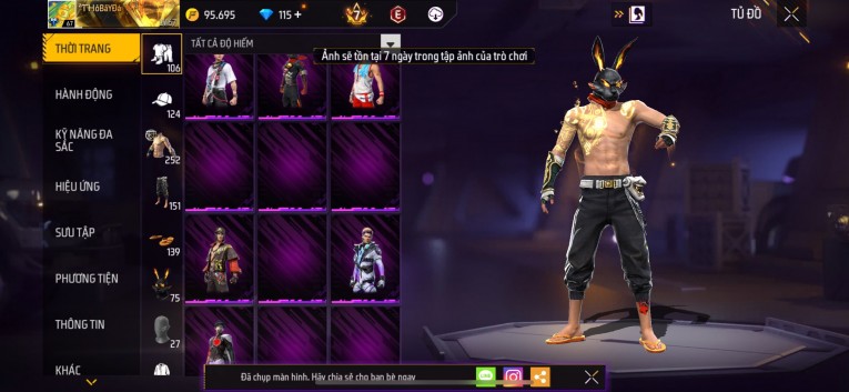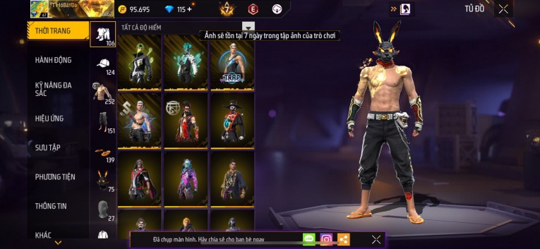 Acc chơi lâu, nhiều skin súng xịn, đầy đủ áo và phụ kiện nam. Đồ đủ dùng, đẹp mắt – vào chơi là chiến ngay!