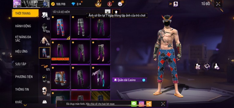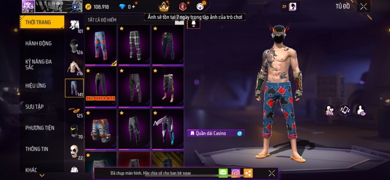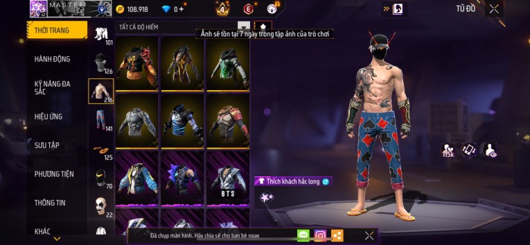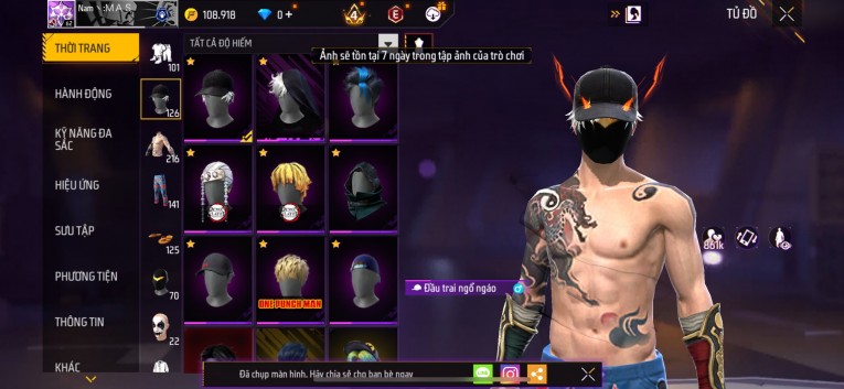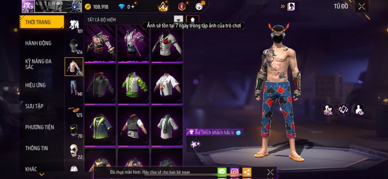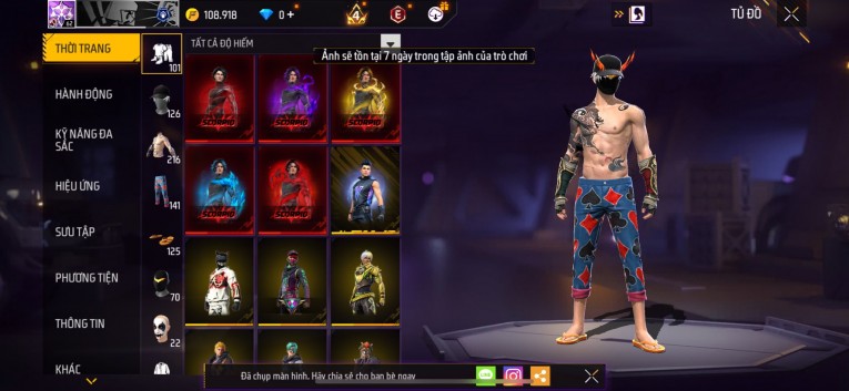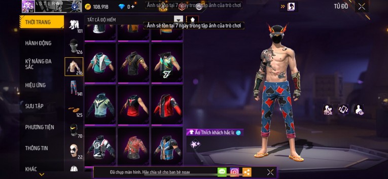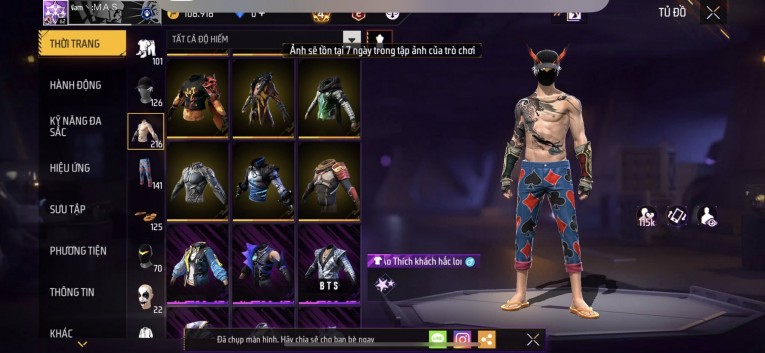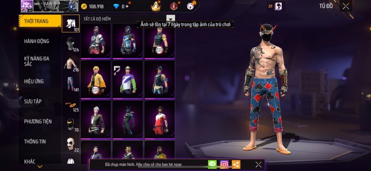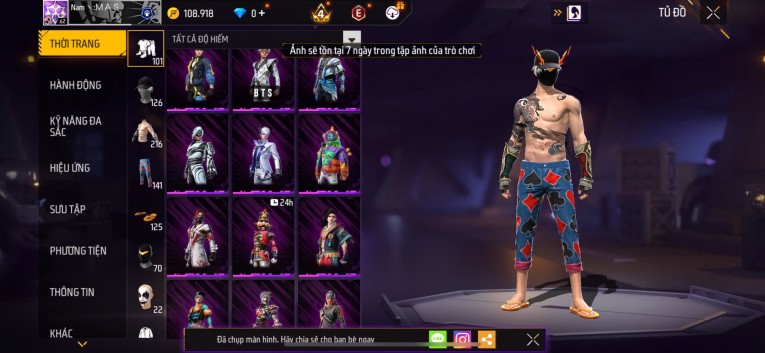 Acc chơi lâu, nhiều skin súng xịn, đầy đủ áo và phụ kiện nam. Đồ đủ dùng, đẹp mắt – vào chơi là chiến ngay!