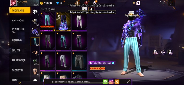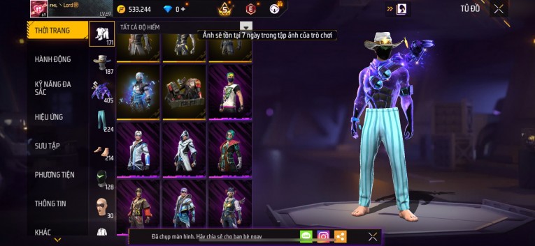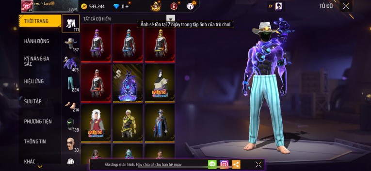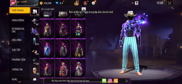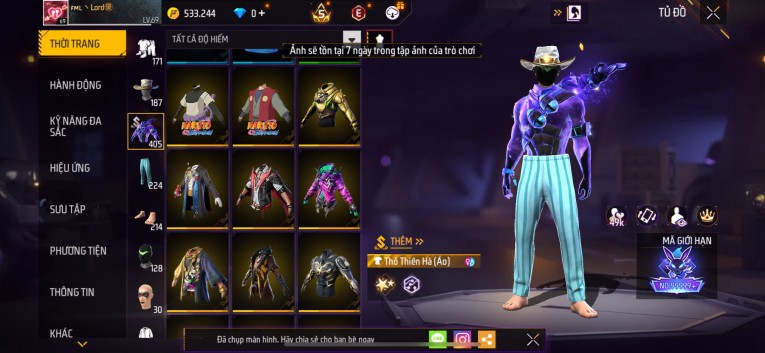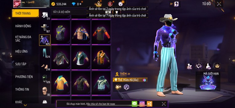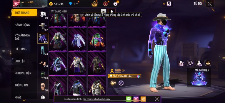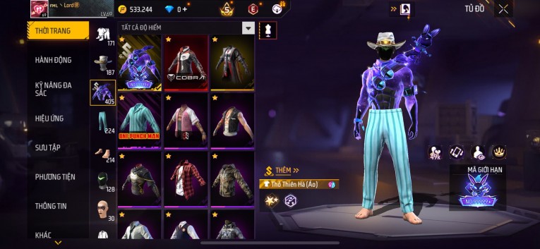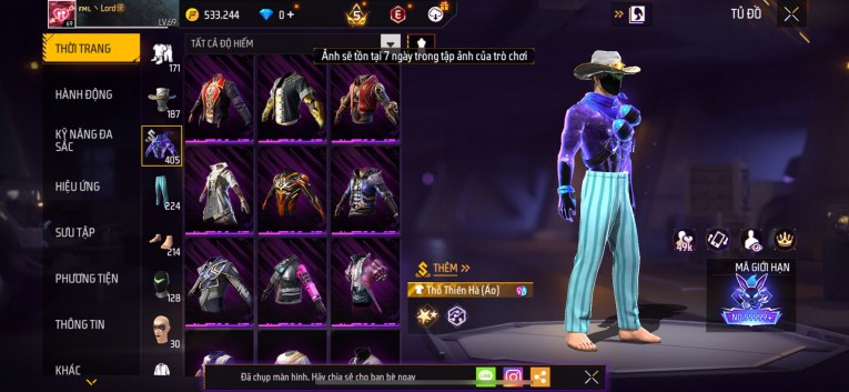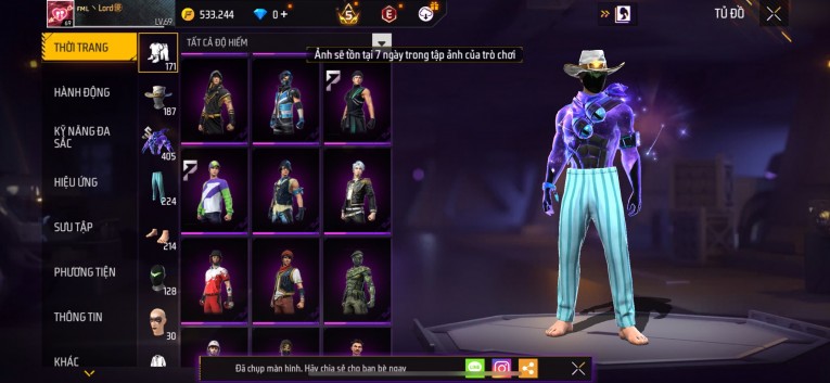 Acc chơi lâu, nhiều skin súng xịn, đầy đủ áo và phụ kiện nam. Đồ đủ dùng, đẹp mắt – vào chơi là chiến ngay!