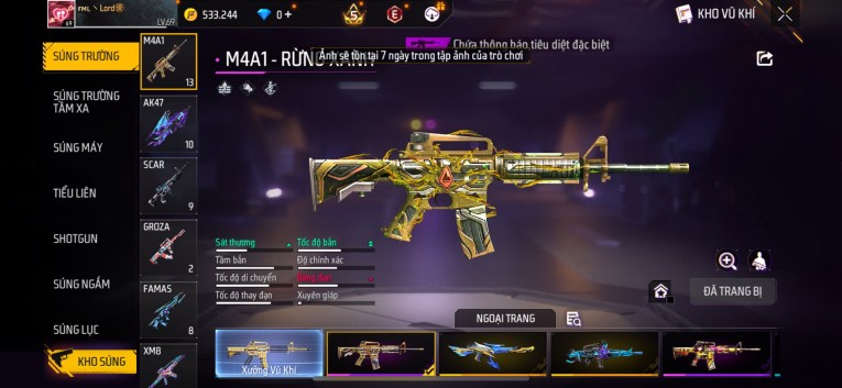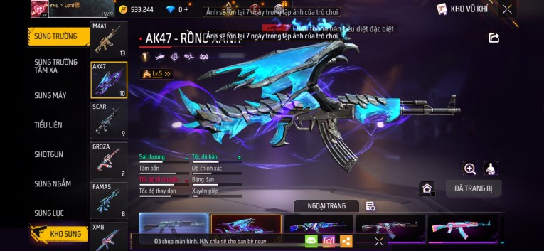 Phù hợp anh em thích skin đẹp, súng mạnh, acc ổn định.