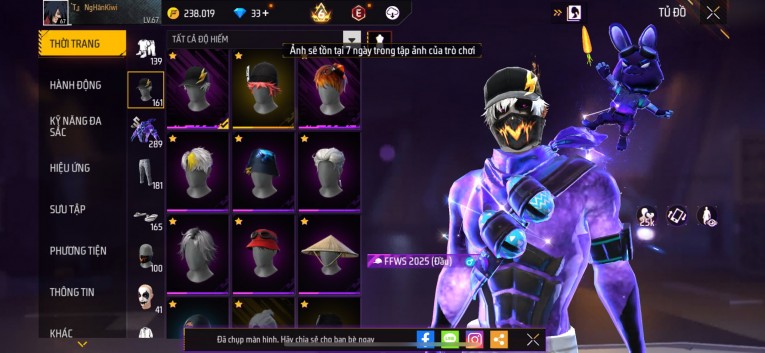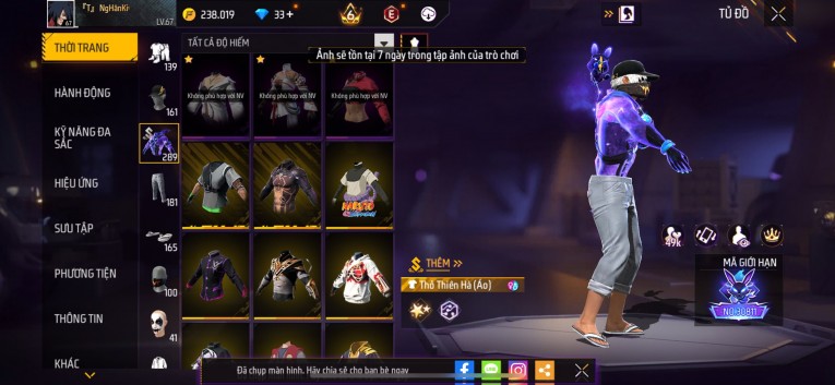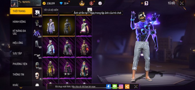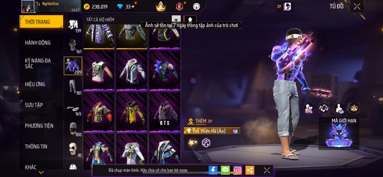 Acc chơi lâu, nhiều skin súng xịn, đầy đủ áo và phụ kiện nam. Đồ đủ dùng, đẹp mắt – vào chơi là chiến ngay!
