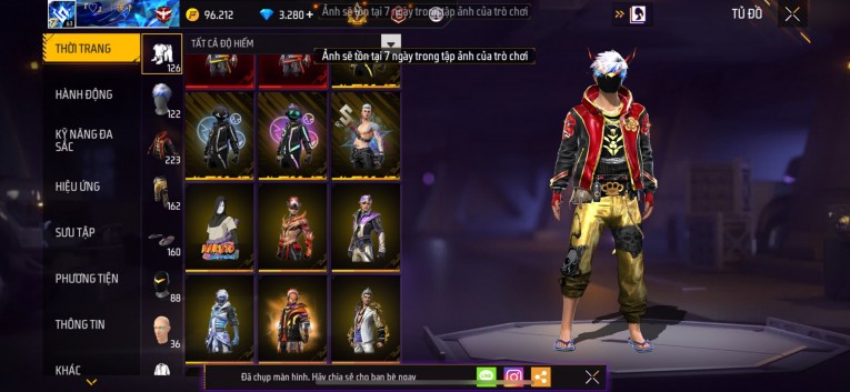 Acc chơi lâu, nhiều skin súng xịn, đầy đủ áo và phụ kiện nam. Đồ đủ dùng, đẹp mắt – vào chơi là chiến ngay!
