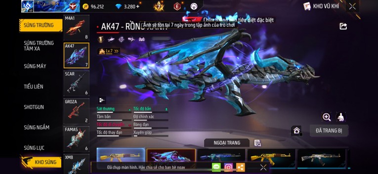 Phù hợp anh em thích skin đẹp, súng mạnh, acc ổn định.
