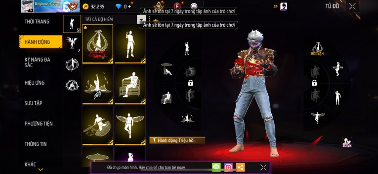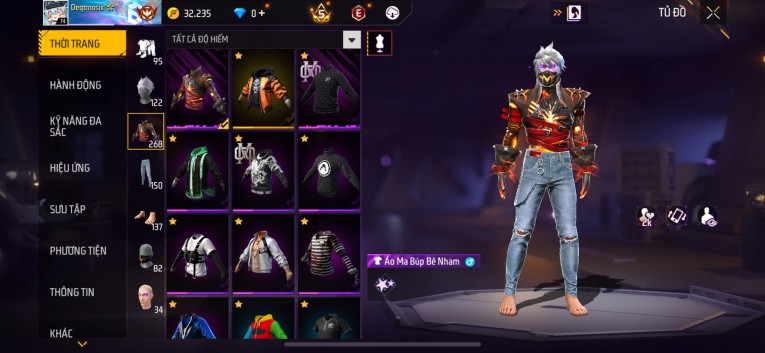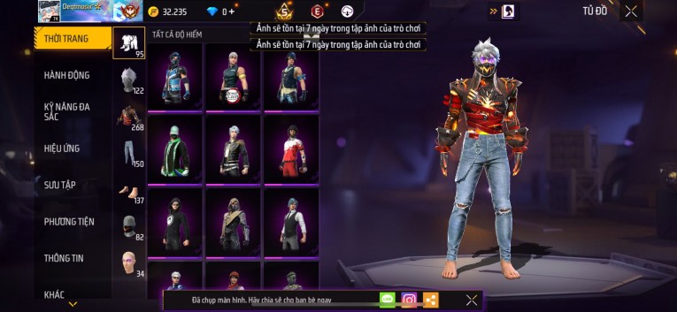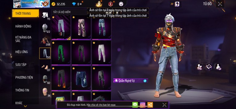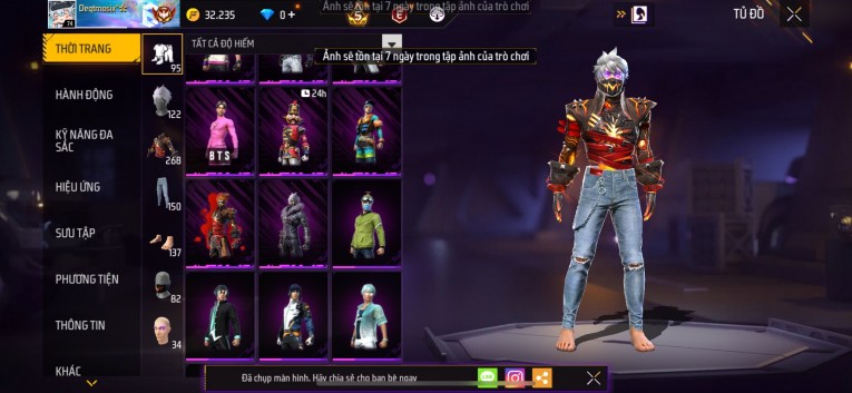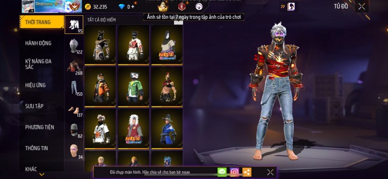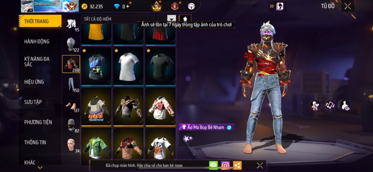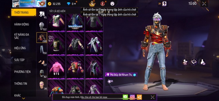 Acc chơi lâu, nhiều skin súng xịn, đầy đủ áo và phụ kiện nam. Đồ đủ dùng, đẹp mắt – vào chơi là chiến ngay!