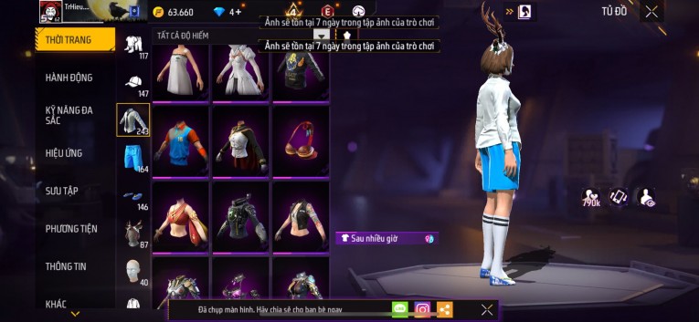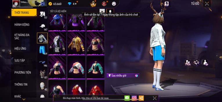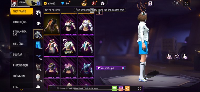 Acc chơi lâu, nhiều skin súng xịn, đầy đủ áo và phụ kiện nam. Đồ đủ dùng, đẹp mắt – vào chơi là chiến ngay!