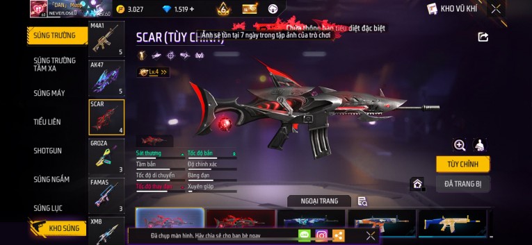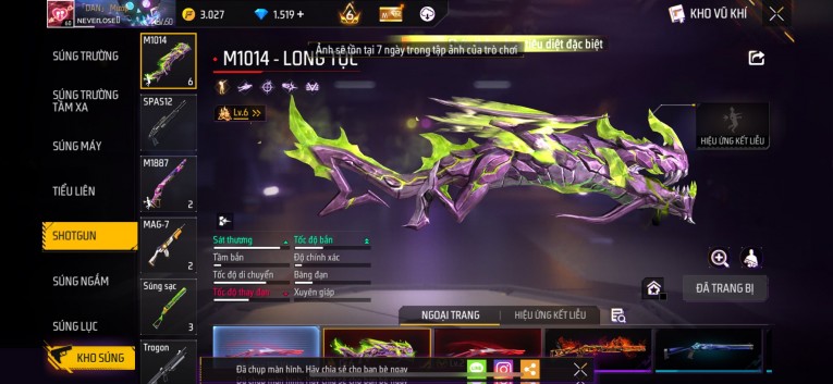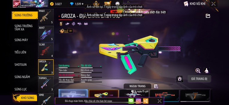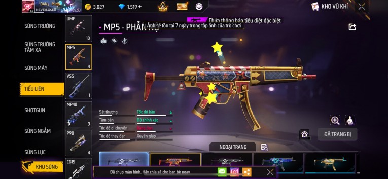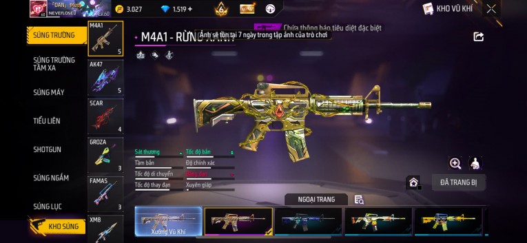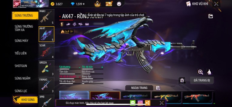 Phù hợp anh em thích skin đẹp, súng mạnh, acc ổn định.