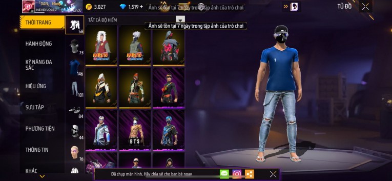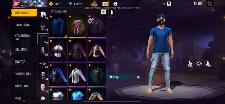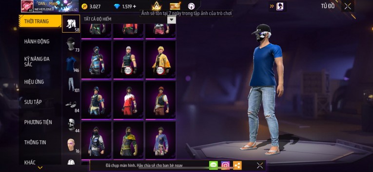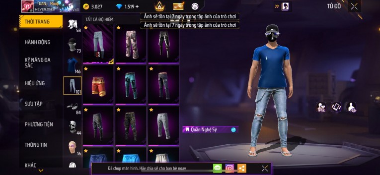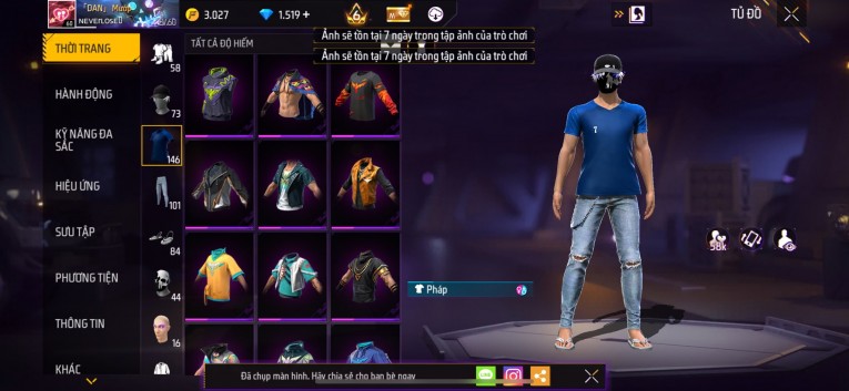 Acc chơi lâu, nhiều skin súng xịn, đầy đủ áo và phụ kiện nam. Đồ đủ dùng, đẹp mắt – vào chơi là chiến ngay!