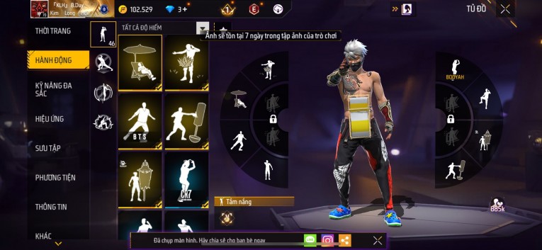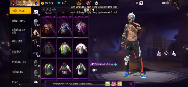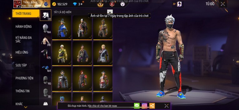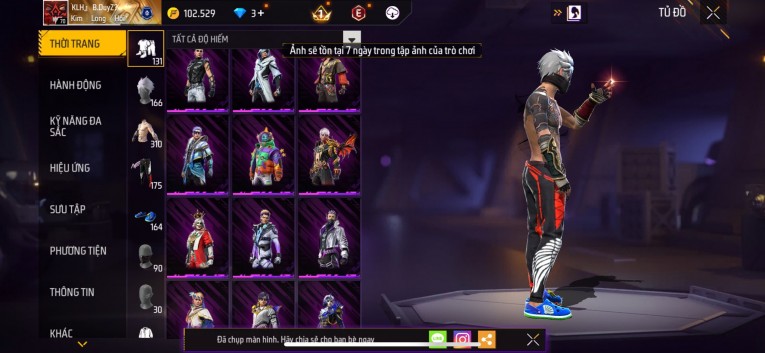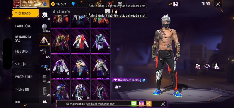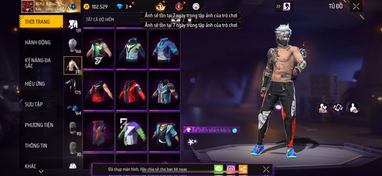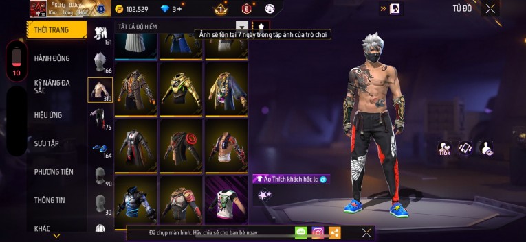 Acc chơi lâu, nhiều skin súng xịn, đầy đủ áo và phụ kiện nam. Đồ đủ dùng, đẹp mắt – vào chơi là chiến ngay!