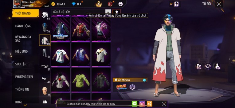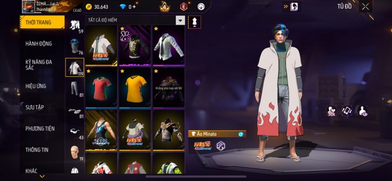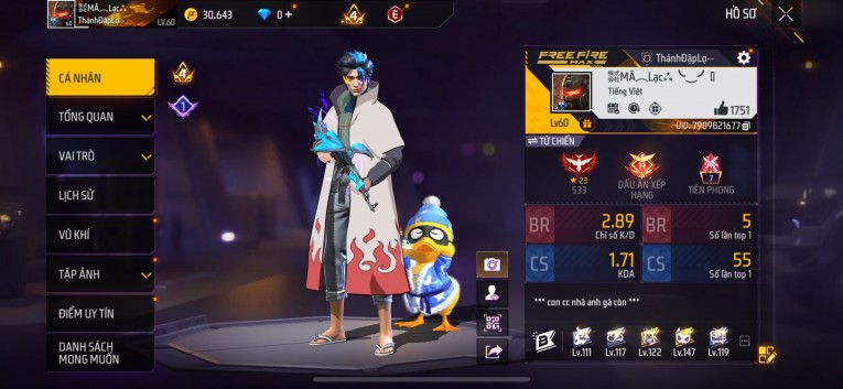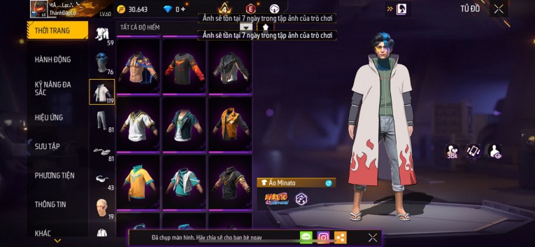 Acc chơi lâu, nhiều skin súng xịn, đầy đủ áo và phụ kiện nam. Đồ đủ dùng, đẹp mắt – vào chơi là chiến ngay!
