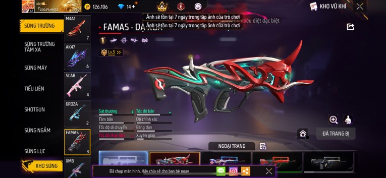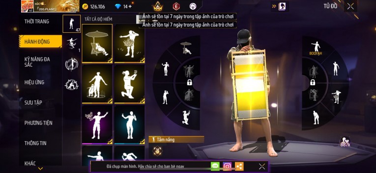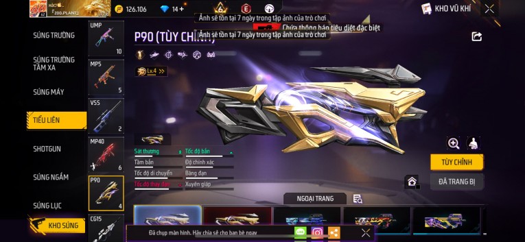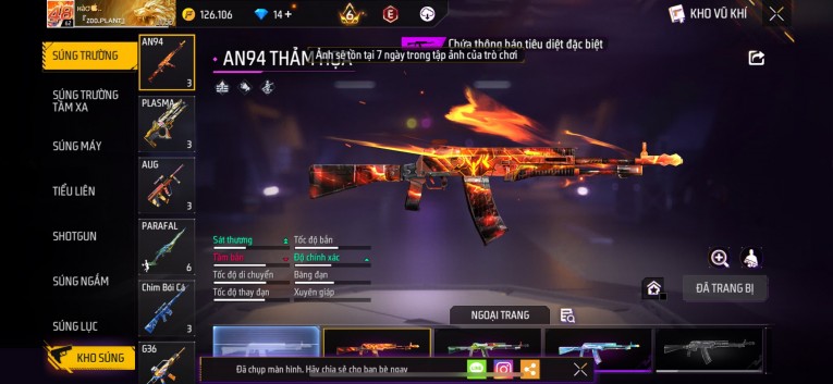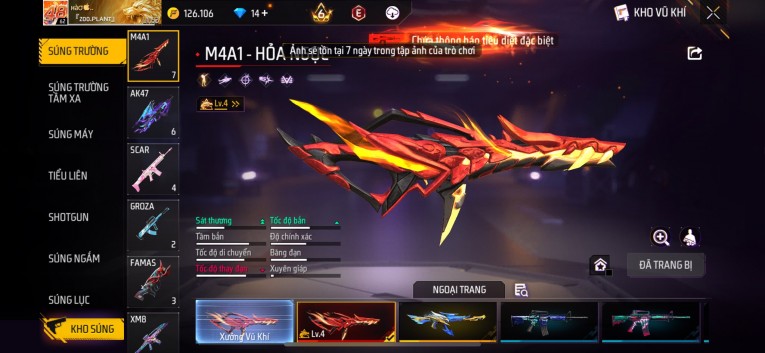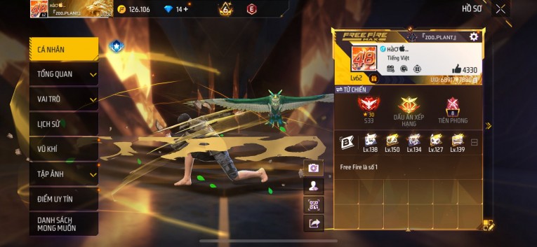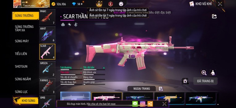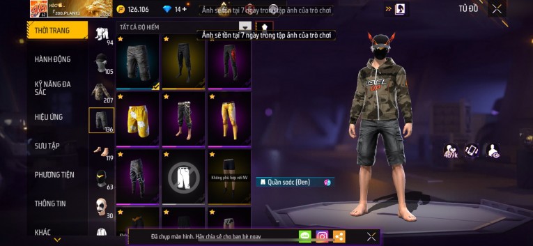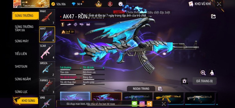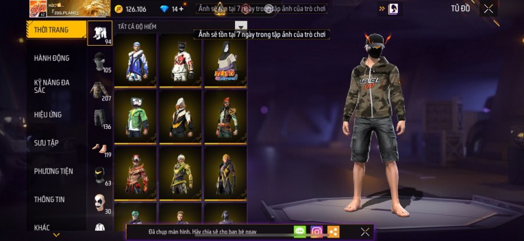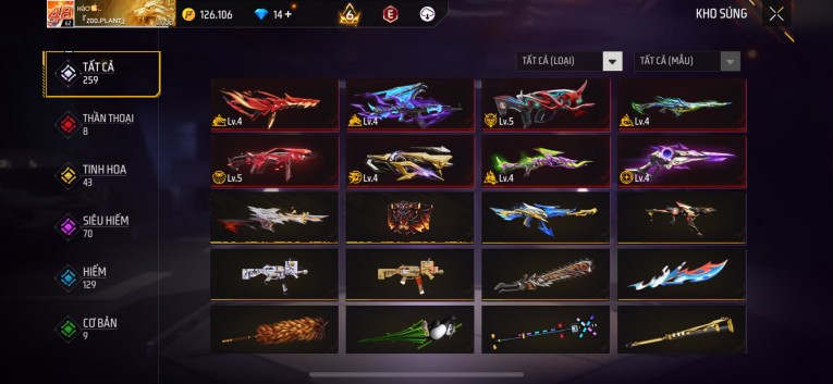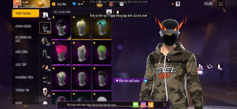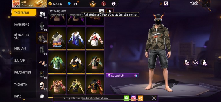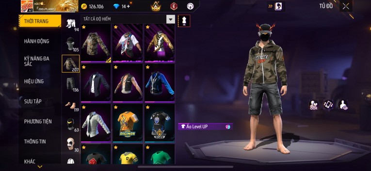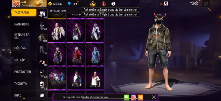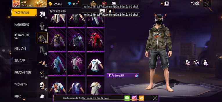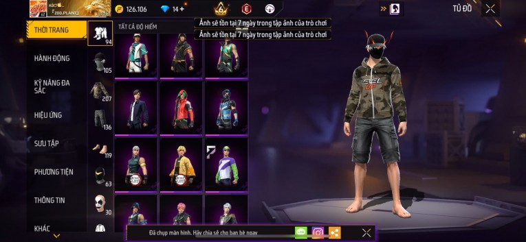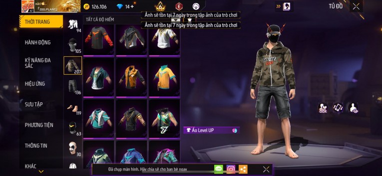 nổi bật: Acc chơi lâu, nhiều skin súng xịn, đầy đủ áo và phụ kiện nam. Đồ đủ dùng, đẹp mắt – vào chơi là chiến ngay! Phù hợp anh em thích skin đẹp, súng mạnh, acc ổn định.