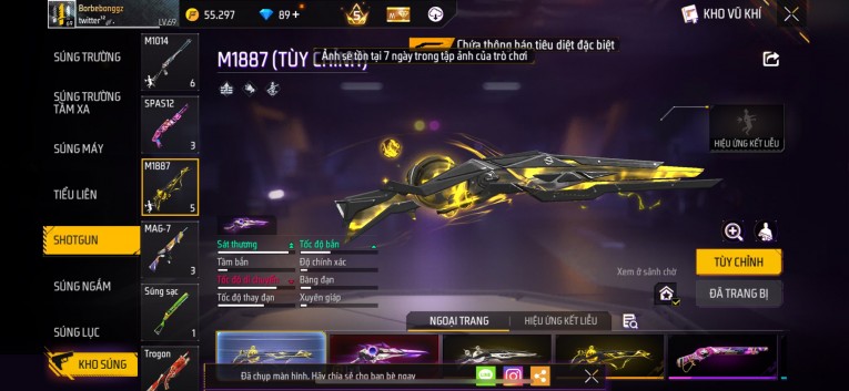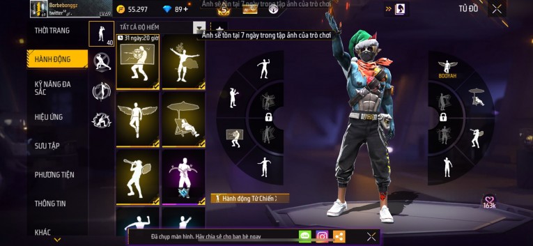 Acc chơi lâu, nhiều skin súng xịn, đầy đủ áo và phụ kiện nam. Đồ đủ dùng, đẹp mắt – vào chơi là chiến ngay! Phù hợp anh em thích skin đẹp, súng mạnh, acc ổn định.
