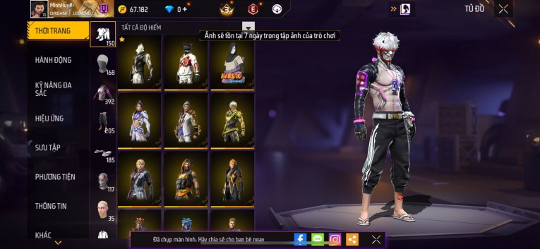 Acc chơi lâu, nhiều skin súng xịn, đầy đủ áo và phụ kiện nam. Đồ đủ dùng, đẹp mắt – vào chơi là chiến ngay! Phù hợp anh em thích skin đẹp, súng mạnh, acc ổn định.