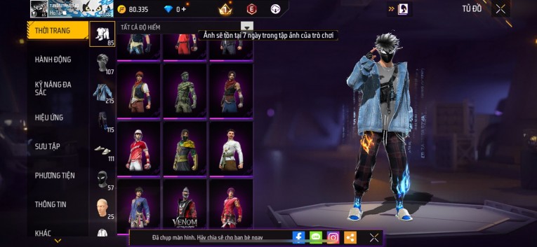 Acc chơi lâu, nhiều skin súng xịn, đầy đủ áo và phụ kiện nam. Đồ đủ dùng, đẹp mắt – vào chơi là chiến ngay! Phù hợp anh em thích skin đẹp, súng mạnh, acc ổn định.